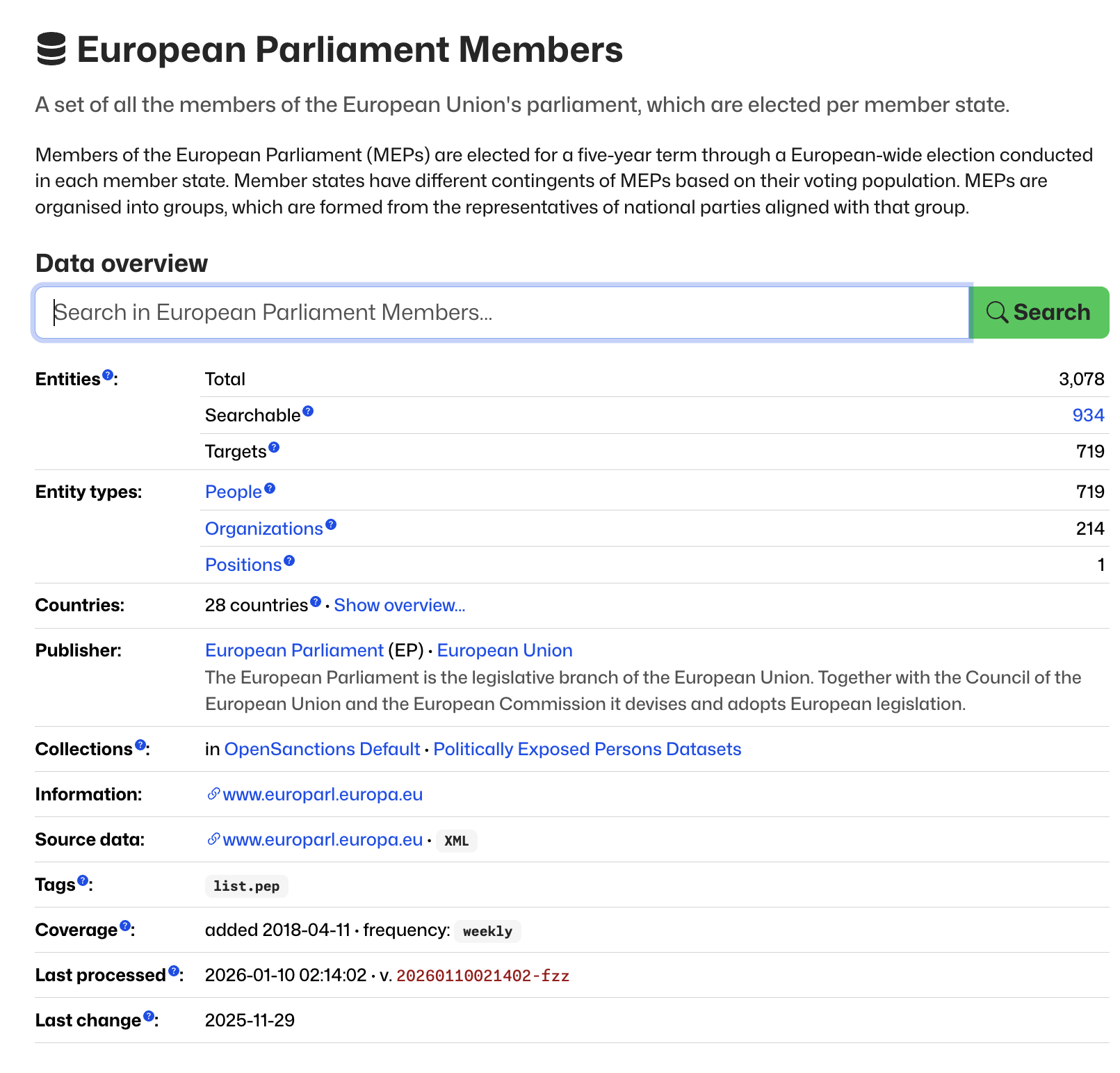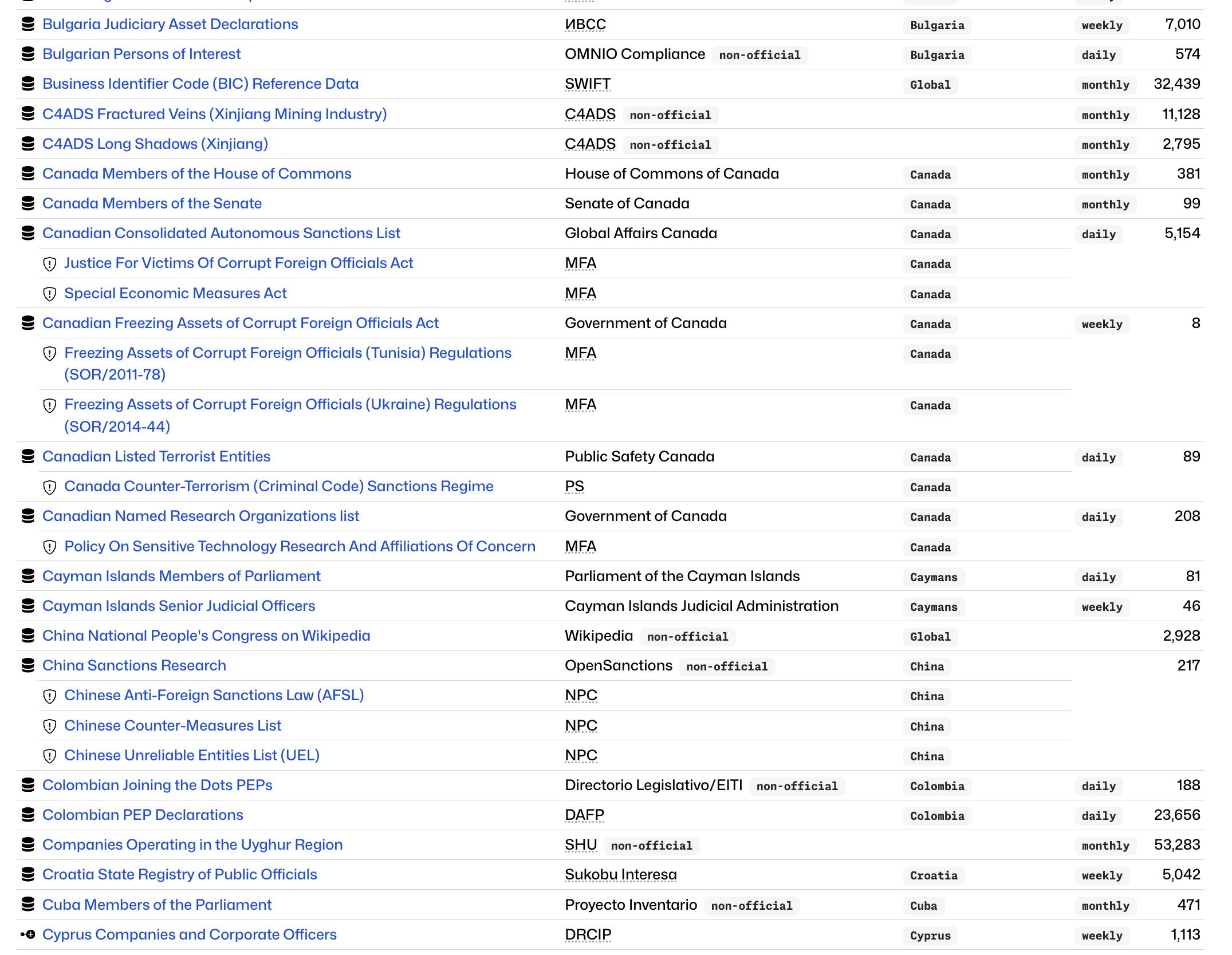 Our data is collected from open sources — mostly official lists published by government bodies and authorities, though most of our Politically Exposed Persons (PEP) data is collected via Wikidata. To ensure data provenance (the process of providing a historical record of exactly where each piece of data comes from), it’s important to us that wherever possible, our data is collected directly from primary sources rather than through third-party aggregators.