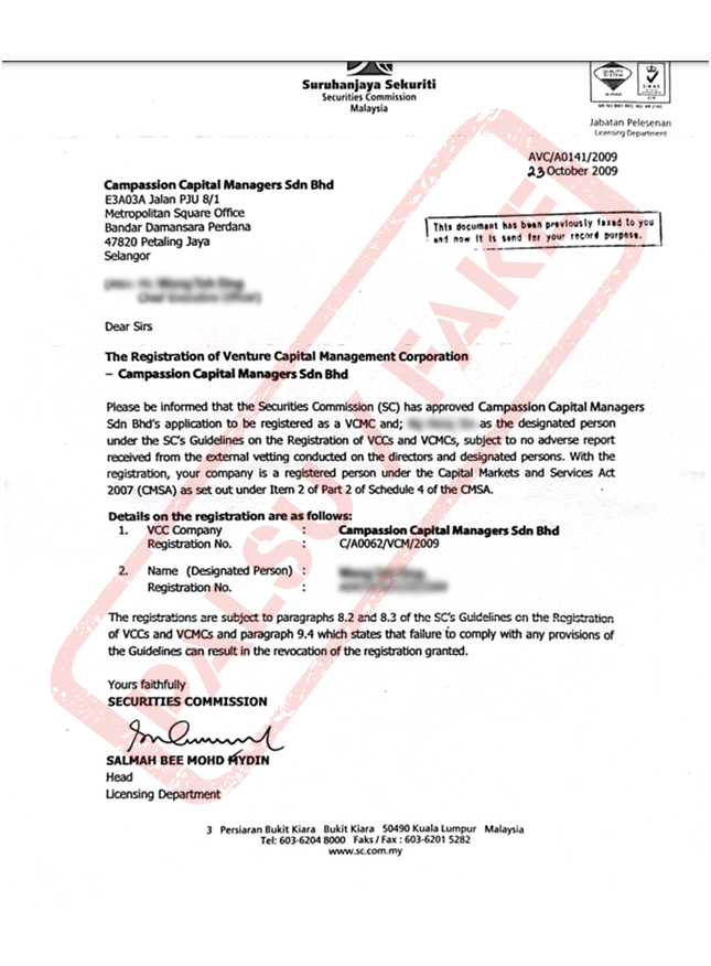 Individuals and entities provide investment services without registration with the Malaysia Securities Commission.