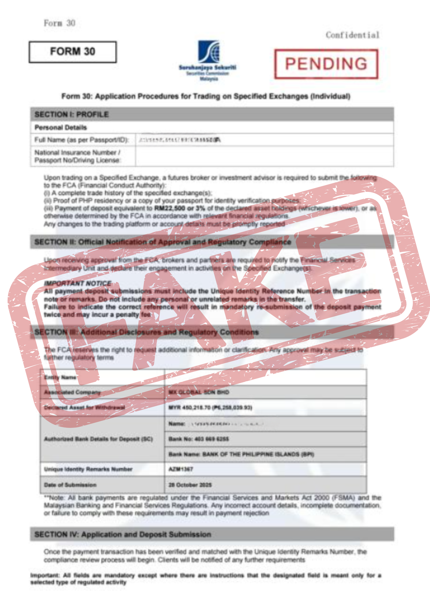 Misusing the name and credentials of MX Global Sdn. Bhd. (a registered Digital Asset Exchange (DAX) operator with the SC) to carry out an illegal investment scheme offering high returns e.g. return of RM24,960 with an investment of RM224
